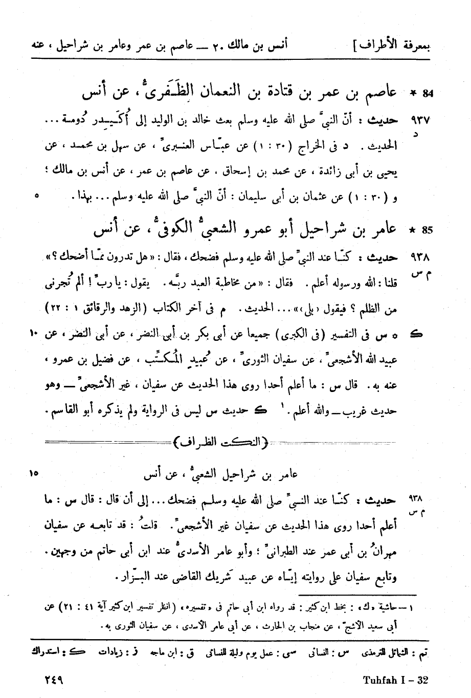 س في التفسير (في الكبرى) جميعاً عن أبي بكر بن أبي النضر عن أبي النضر عن عبيد الله الأشجعيِّ عن سفيان الثوريِّ عن عُبيدٍ المُكتِّب، عن فضيل بن عمرو عنه به. قال