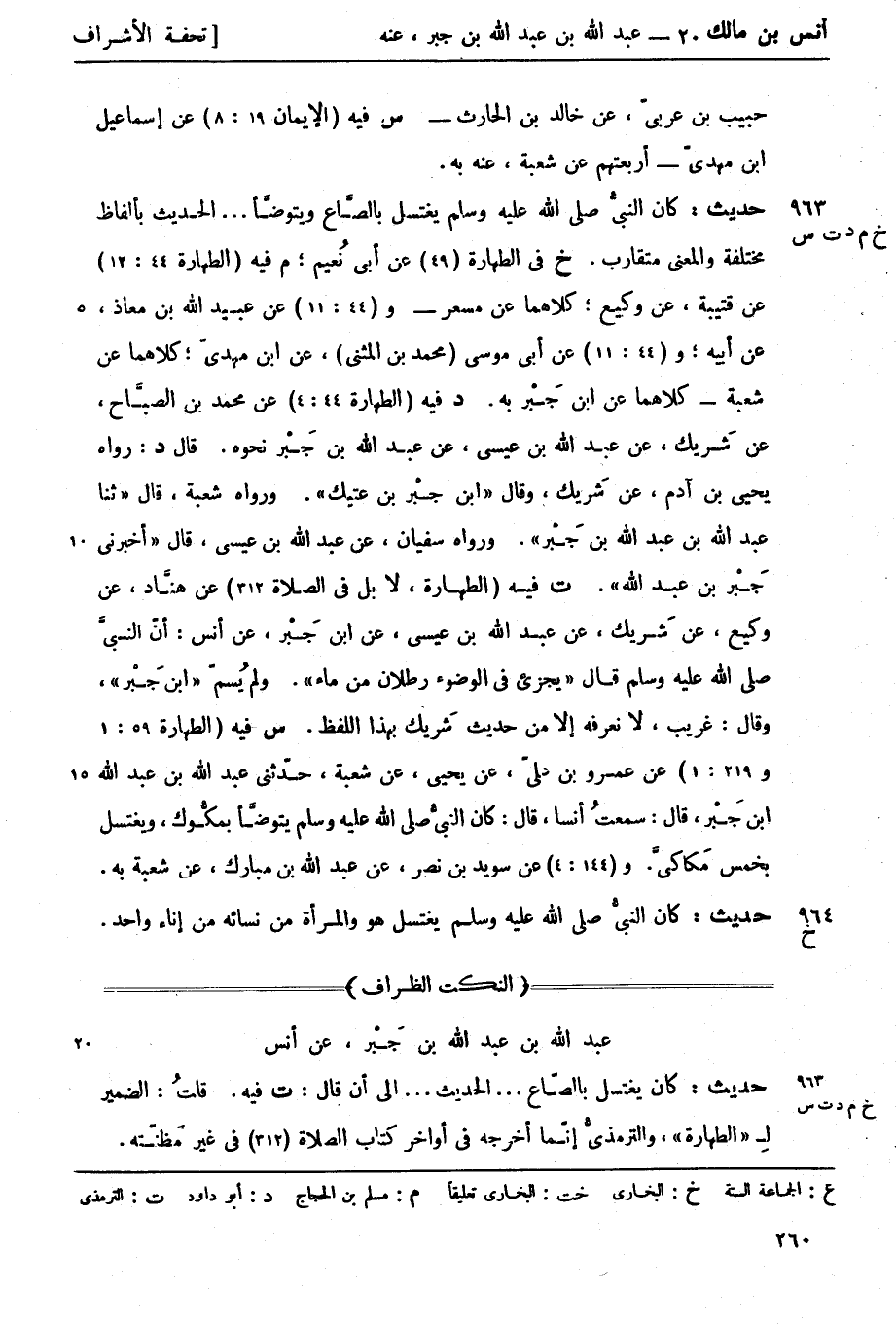 963 -[خ م د ت س] حديث كان النبيُّ صَلَّى اللَّهُ عَلَيْهِ وَسَلَّمَ يغتسل بالصَّاع ويتوضَّأ.... الحديث بألفاظ مختلفة والمعنى متقارب