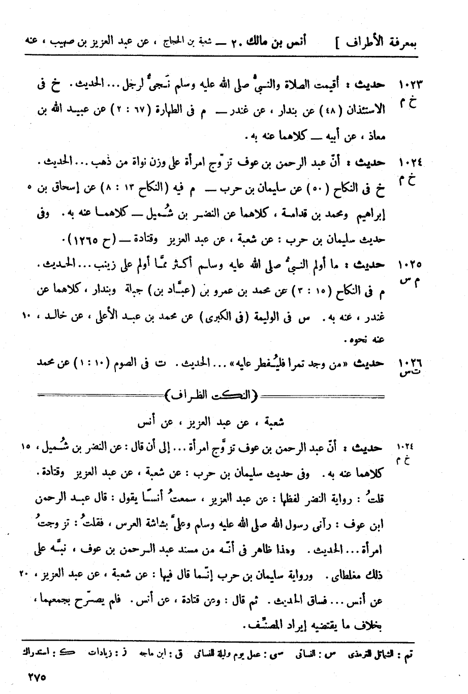 م فيه (النكاح 1: 8) عن إسحاق بن إبراهيم ومحمد بن قدامة، كلاهما عن الضر بن شُميل - كلاهما عنه به. وفي حديث سليمان بن حرب: عن شعبة، عن عبد العزيز وقتادة - (ح 1265) .