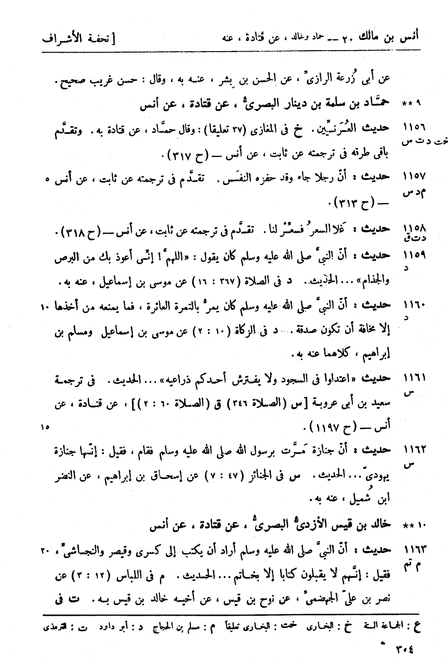 1156 -[خت د ت س] حديث العُرَنيِّين (خ) في المغازي (37 تعليقاً) وقال حمَّاد عن قتادة به وتقدَّم باقي طرقه في ترجمته عن ثابت عن أنس (ح 317) .