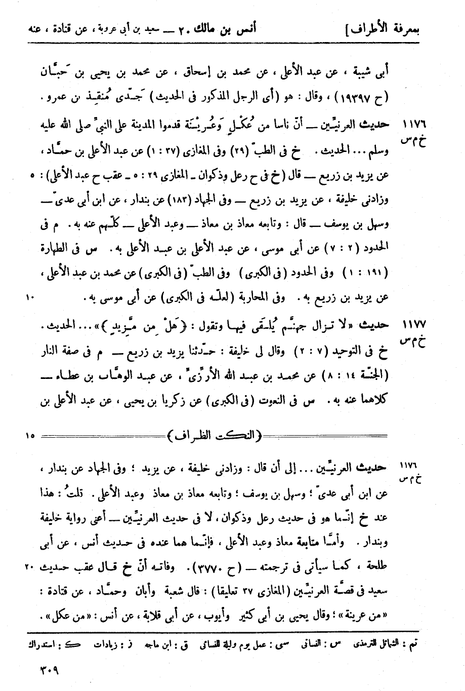 س في الطهارة (191: 1) وفي الحدود (في الكبرى) وفي الطبّ (في الكبرى) عن محمد بن عبد الأعلى عن يزيد بن زريع به وفي المحاربة (لعلّه في الكبرى) عن أبي موسى به.