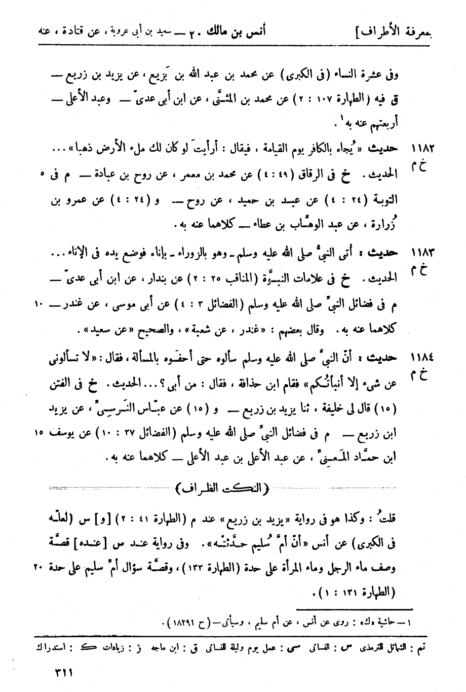 م في فضائل النبيِّ صَلَّى اللَّهُ عَلَيْهِ وَسَلَّمَ (الفضائل 3: 4) عن أبي موسى عن غندر كلاهما عنه به. وقال بعضهم غندر عن شعبة والصحيح عن سعيد