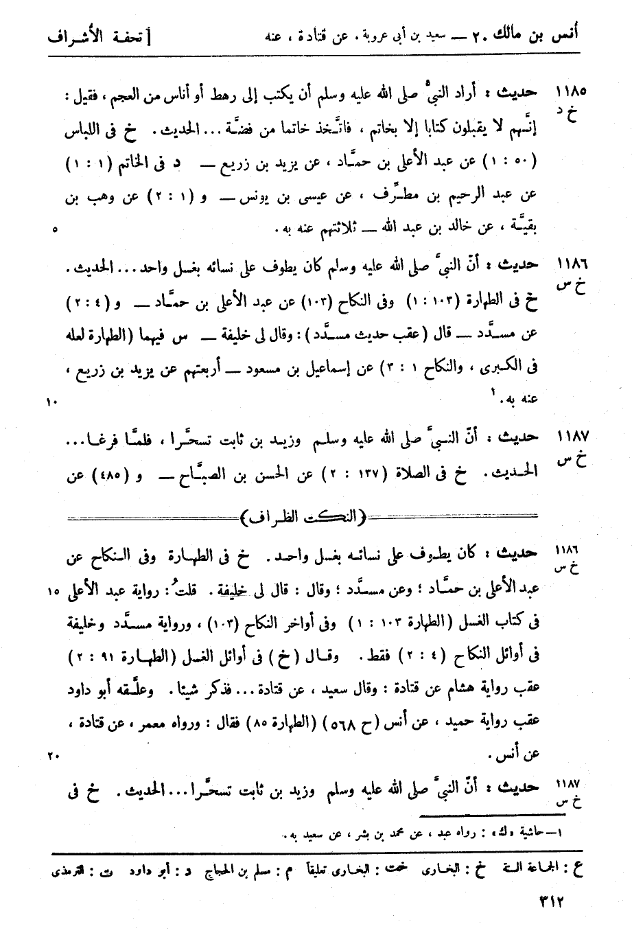س في الصوم (11 - ألف: 2) عن أبي الأشعث أحمد بن المقدام عن خالد بن الحارث عنه نحوه رواه غير واحد عن قتادة عن أنس عن زيد بن ثابت وسيأتي (ح 3696) .