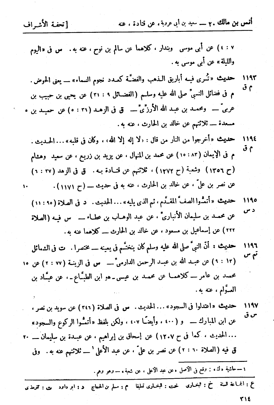 ق فيه (الصلاة 60: 2) عن نصر بن عليّ عن عبد الأعلى 1 ثلاثتهم عنه به. وفي -[315]- حديث ابن المبارك عن سعيد وحمَّاد بن سلمة (ح 1161) .