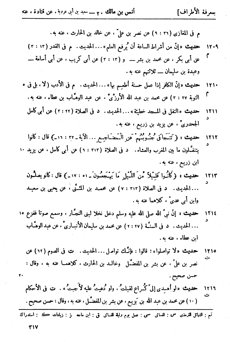 1216 -[ت] حديث لو أُهدِي إليَّ كُراع لقبلتُ ولو دُعيتُ عليه لأَجبتُ (ت) في الأحكام (10) عن محمد بن عبد الله بن بَزيع عن بشر بن المفضَّل عنه به. وقال حسن صحيح.