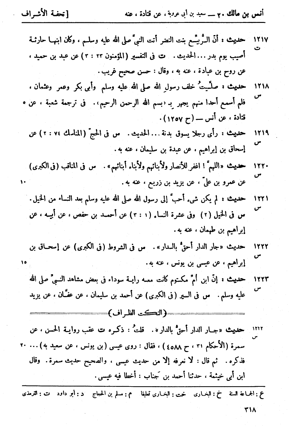 1222 -[س] حديث جار الدار أحقُّ بالدار (س) في الشروط (في الكبرى) عن إسحاق بن إبراهيم عن عيسى بن يونس عنه به.