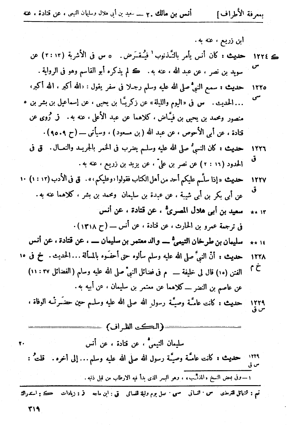 س في اليوم والليلة عن زكريَّا بن يحيى عن إسماعيل بن بشر بن منصور ومحمد بن يحيى بن فيَّاض كلاهما عن عبد الأعلى عنه به. ز روى عن قتادة عن أبي الأحوص عن عبد الله (بن مسعود وسيأتي (ح 9509) .