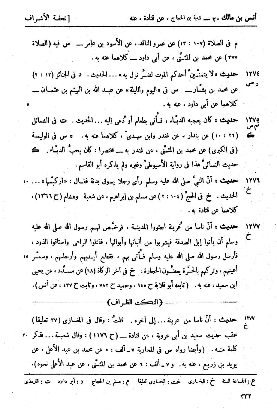 خ في الحجِّ (104: 2) عن مسلم بن إبراهيم عن شعبة وهشام (ح 1366) كلاهما عن قتادة به.