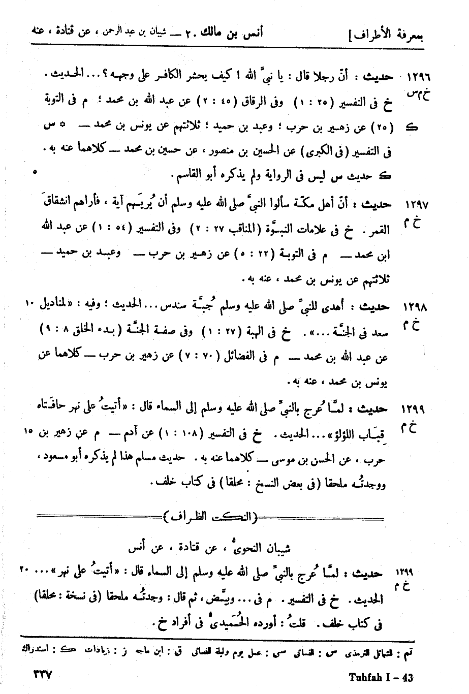 م عن زهير بن حرب عن الحسن بن موسى كلاهما عنه به. حديث مسلم هذا لم يذكره أبو مسعود ووجدتُه ملحقاً (في بعض النسخ محلقاً) في كتب خلف.