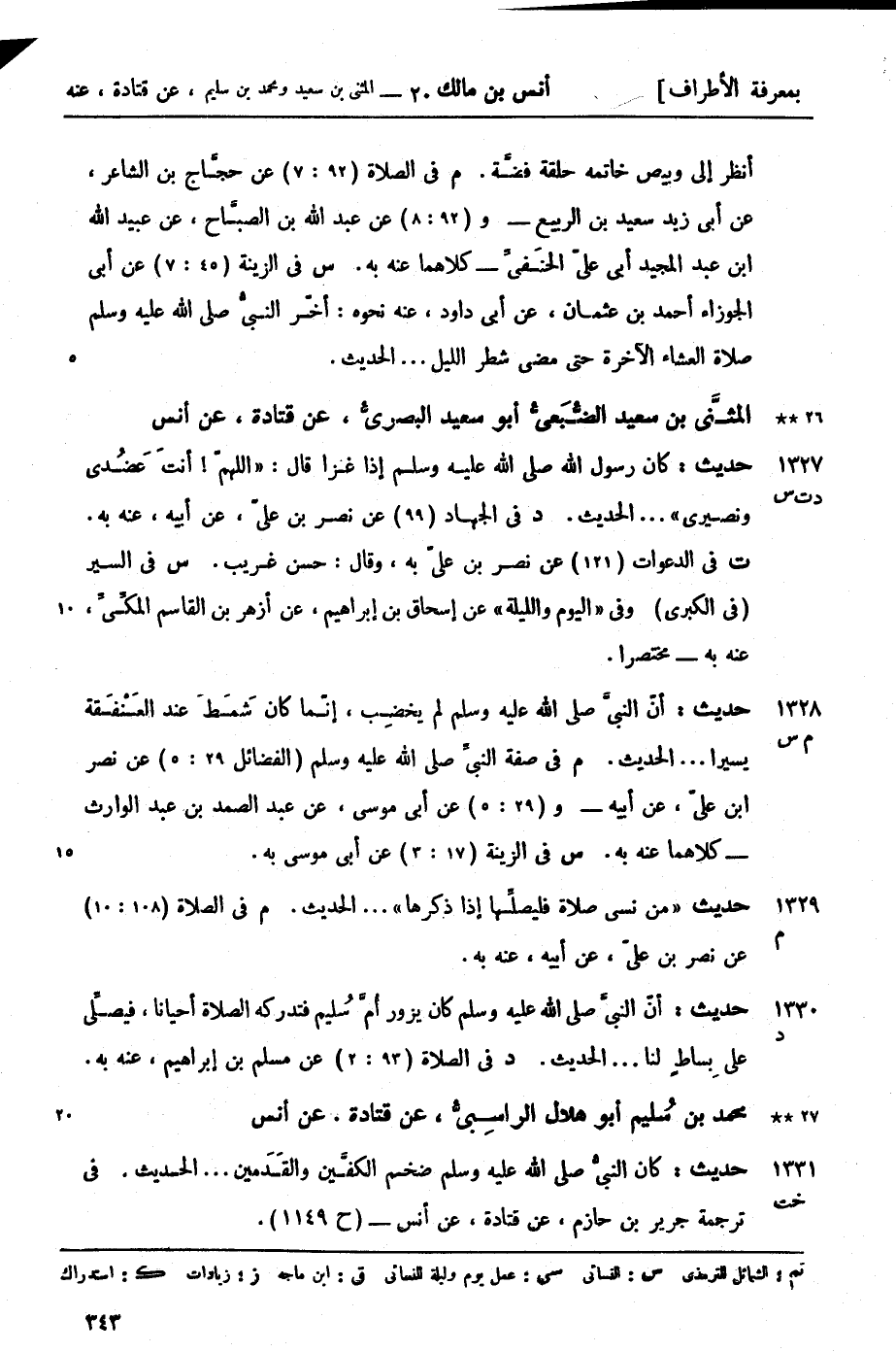 1331 -[خت] حديث كان النبيُّ صَلَّى اللَّهُ عَلَيْهِ وَسَلَّمَ ضخم الكفَّين والقَدَمين.... الحديث في ترجمة جرير بن حازم عن قتادة عن أنس (ح 1149) .