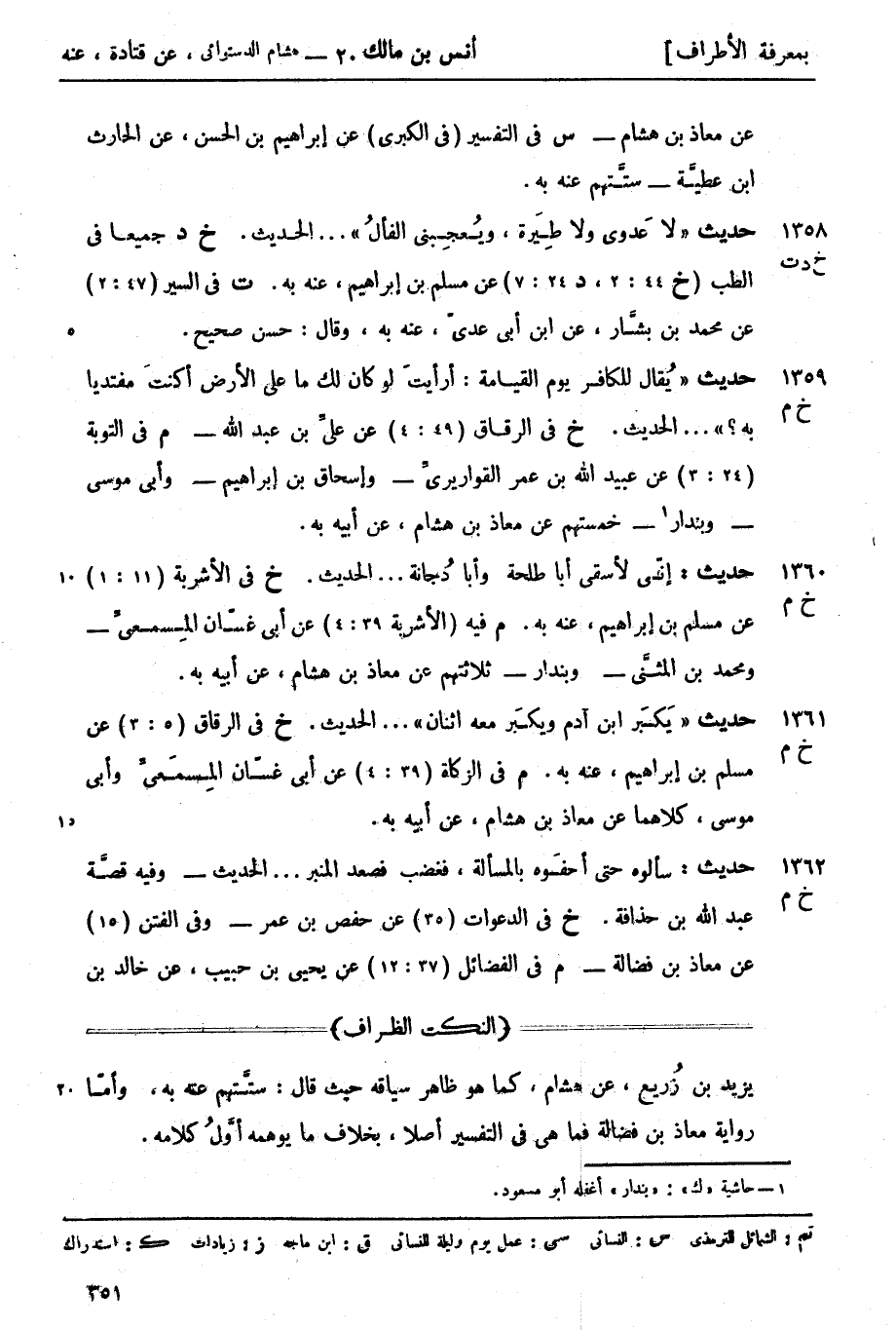 م في التوبة (24: 3) عن عبيد الله بن عمر القواريريِّ وإسحاق بن إبراهيم وأبي موسى وبندار 1 خمستهم عن معاذ بن هشام عن أبيه به