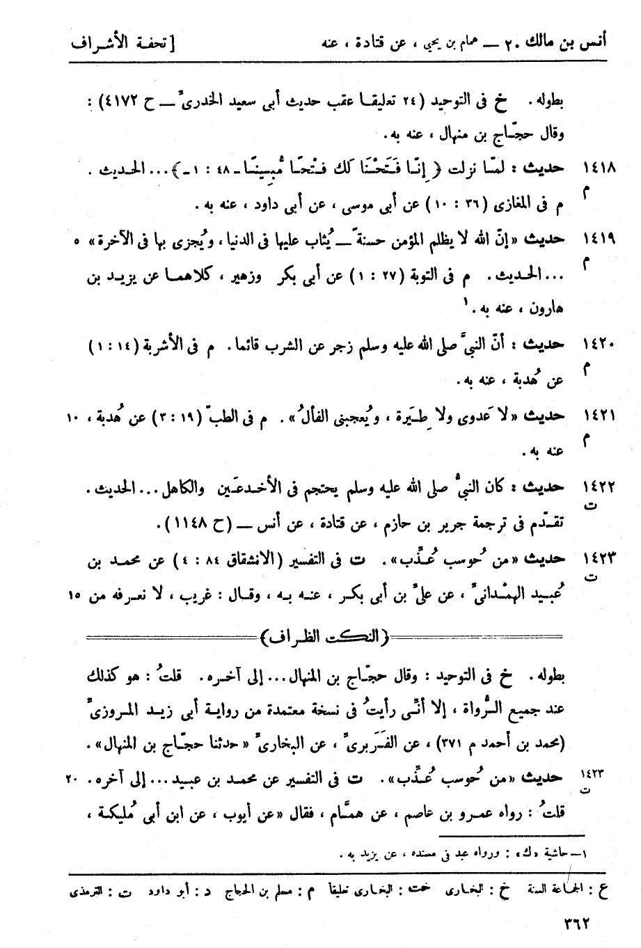 1421 -[م] حديث لا عَدوى ولا طِيَرة ويُعجبني الفألُ (م) في الطبّ (19: 3) عن هُدبة عنه به.
