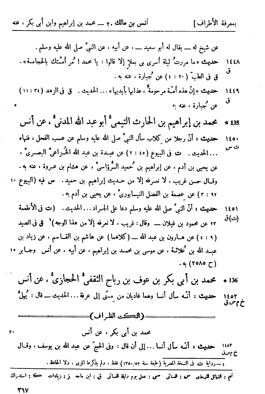 1448 -[ق] حديث ما مررتُ ليلة أُسري بي بملأ إلا قالوا يا محمد مُر أُّمَّتك بالحجامة (ق) في الطبّ (20: 4) عن جُبارة عنه به.