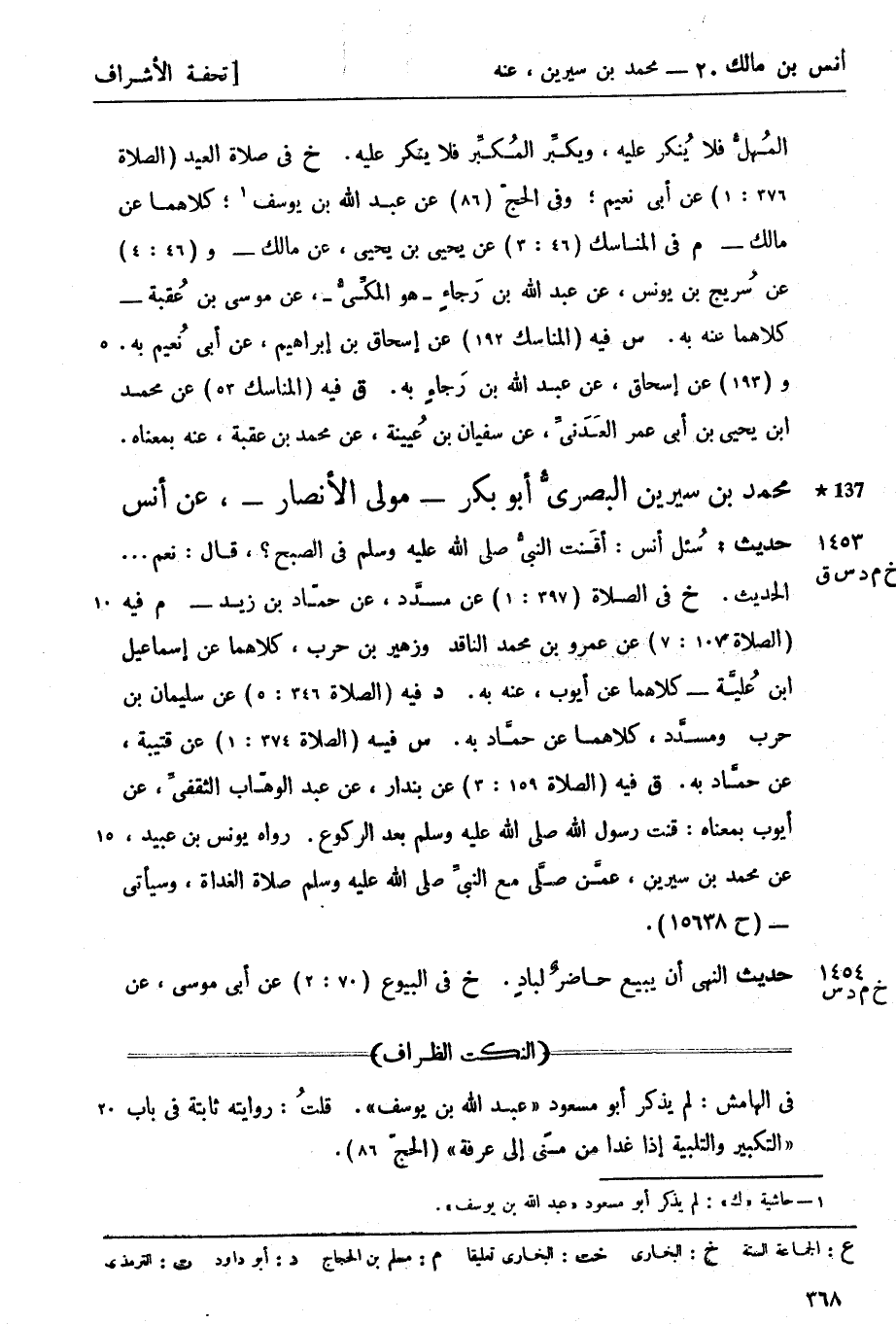 م فيه (البيوع 6: 6) عن أبي موسى عن معاذ بن معاذ و (6: 6) عن أبي موسى عن ابن أبي عديّ كلاهما عن ابن عَون و (6: 5) عن يحيى بن يحيى عن هُشيم عن يونس بن عُبيد