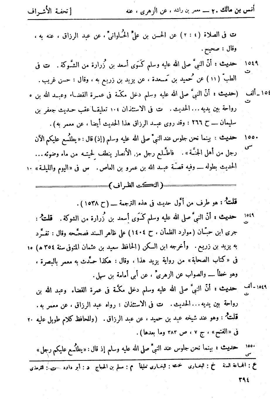 س في اليوم والليلة -[395]- عن سويد بن نصر عن ابن المبارك، عنه به. [ز] قال حمزة بن محمد الكِنانيُّ الحافظ: لم يسمعه الزهريُّ من أنس، رواه عن رجل، عن أنس، كذلك رواه عقيل وإسحاق بن راشد وغير واحد، عن الزهريِّ، وهو الصواب 1