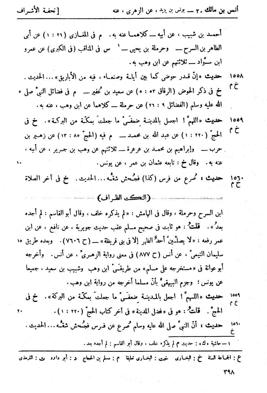 1559 -[خ م] حديث اللهمَّ! اجعل بالمدينة ضِعفَيْ ما جعلتَ بمكّة من البركة (خ) في الحجّ (220: 1) عن عبد الله بن محمد
