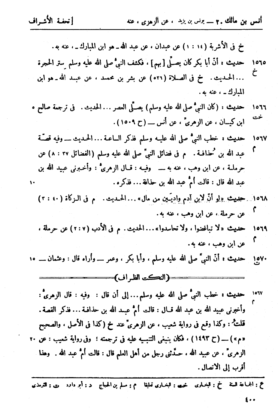 م في فضائل النبيِّ صَلَّى اللَّهُ عَلَيْهِ وَسَلَّمَ (الفضائل 37: 8) عن حرملة، عن ابن وهب، عنه به - وفيه: قال الزهريُّ: وأخبرني عبيد الله بن عبد الله قال: قالت أُمُّ عبد الله بن حذافة.... فذكره