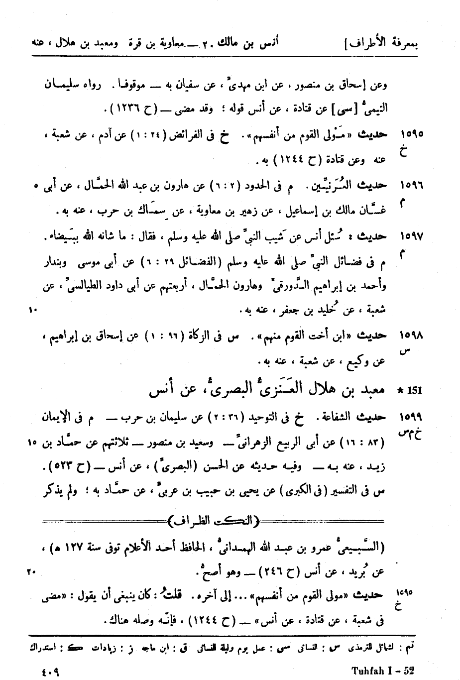 1599 -[خ م س] حديث الشفاعة. (خ) في التوحيد (36: 2) عن سليمان بن حرب -