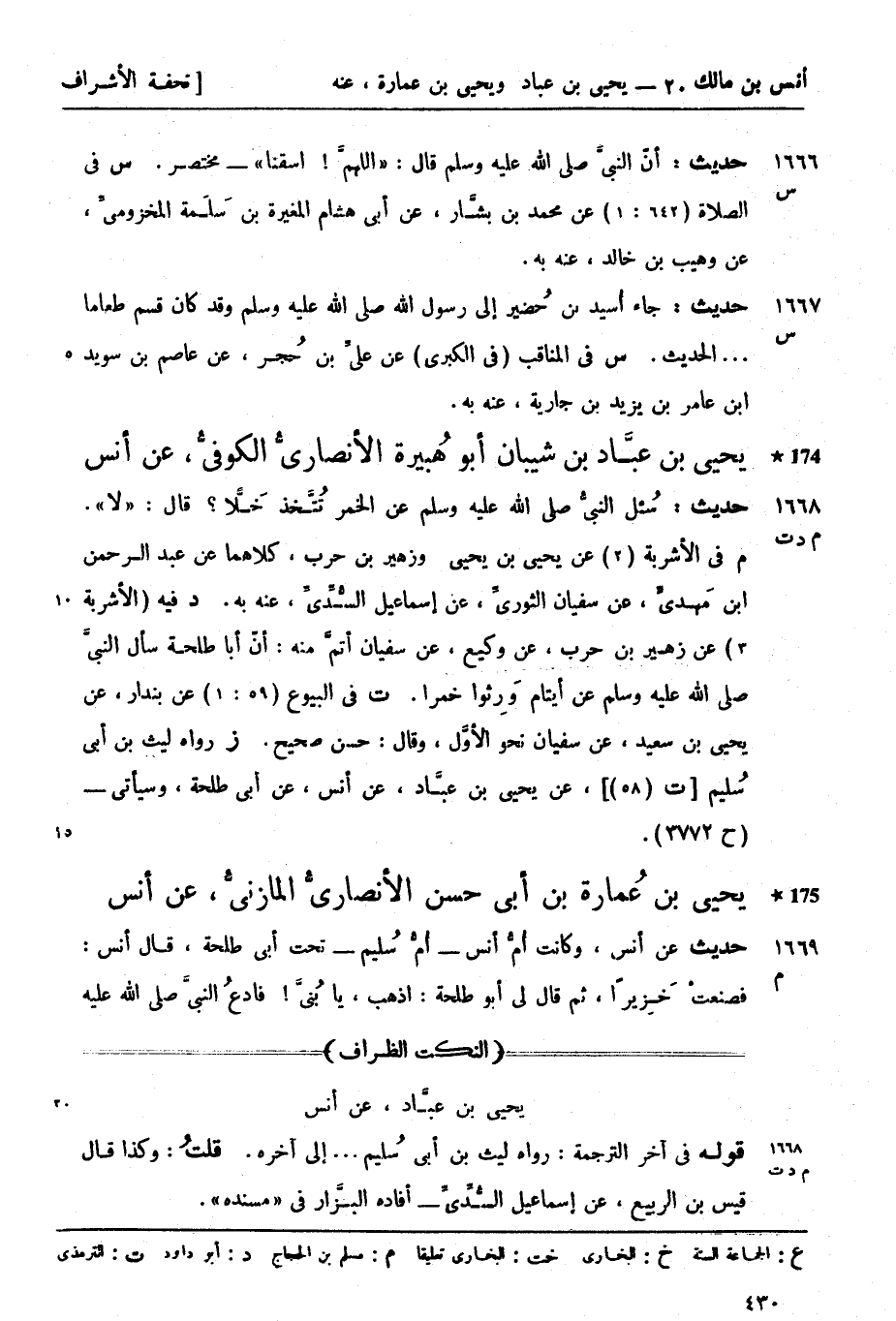 1668 -[م د ت] حديث سُئل النبيُّ صَلَّى اللَّهُ عَلَيْهِ وَسَلَّمَ عن الخمر يتخذ خَلًّا؟ قال: لا م في الأشربة (2) عن يحيى بن يحيى وزهير بن حرب، كلاهما عن عبد الرحمن بن مَهْديّ، عن سفيان الثوريِّ، عن إسماعيل السُّدِّيِّ، عنه به. د فيه (الأشربة 3) عن زهير بن حرب، عن وكيع، عن سفيان أتمَّ منه، أنّ أبا طلحة سأل النبيَّ صَلَّى اللَّهُ عَلَيْهِ وَسَلَّمَ عن أيتام وَرِثوا خمراً. ت في البيوع (59: 1) عن بندار، عن يحيى بن سعيد، عن سفيان نحو الأوَّل، وقال: حسن صحيح. ز رواه ليث بن أبي سُليم [ت (58) ] عن يحيى بن عبَّاد، عن أنس، عن أبي طلحة، وسيأتي - (ح 3772)