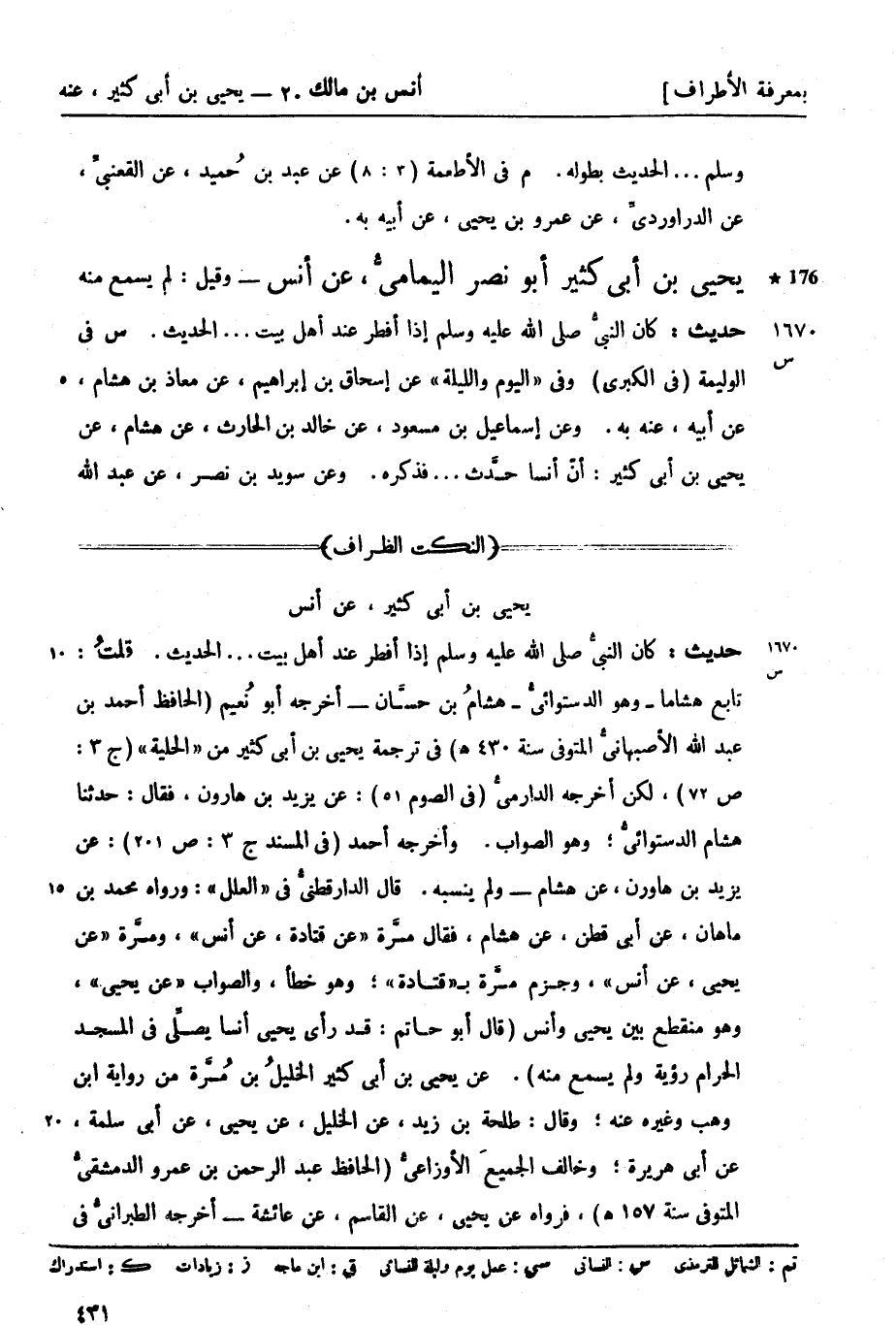 يحيى بن أبي كثير أبو نصر اليماميُّ، عن أنس - وقيل لم يسمع منه