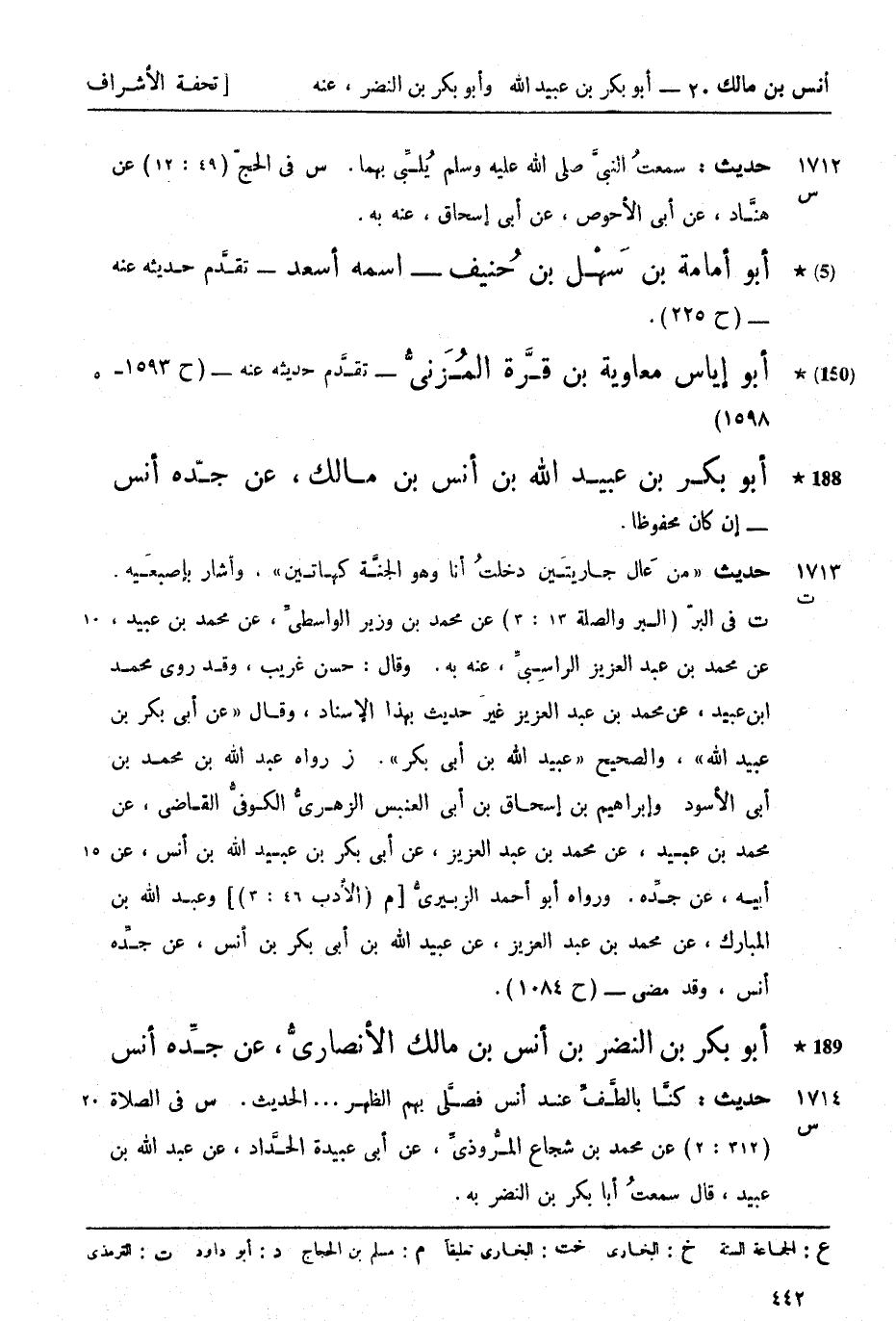 أبو بكر بن النضر بن أنس بن مالك الأنصاريُّ عن جدِّه أنس