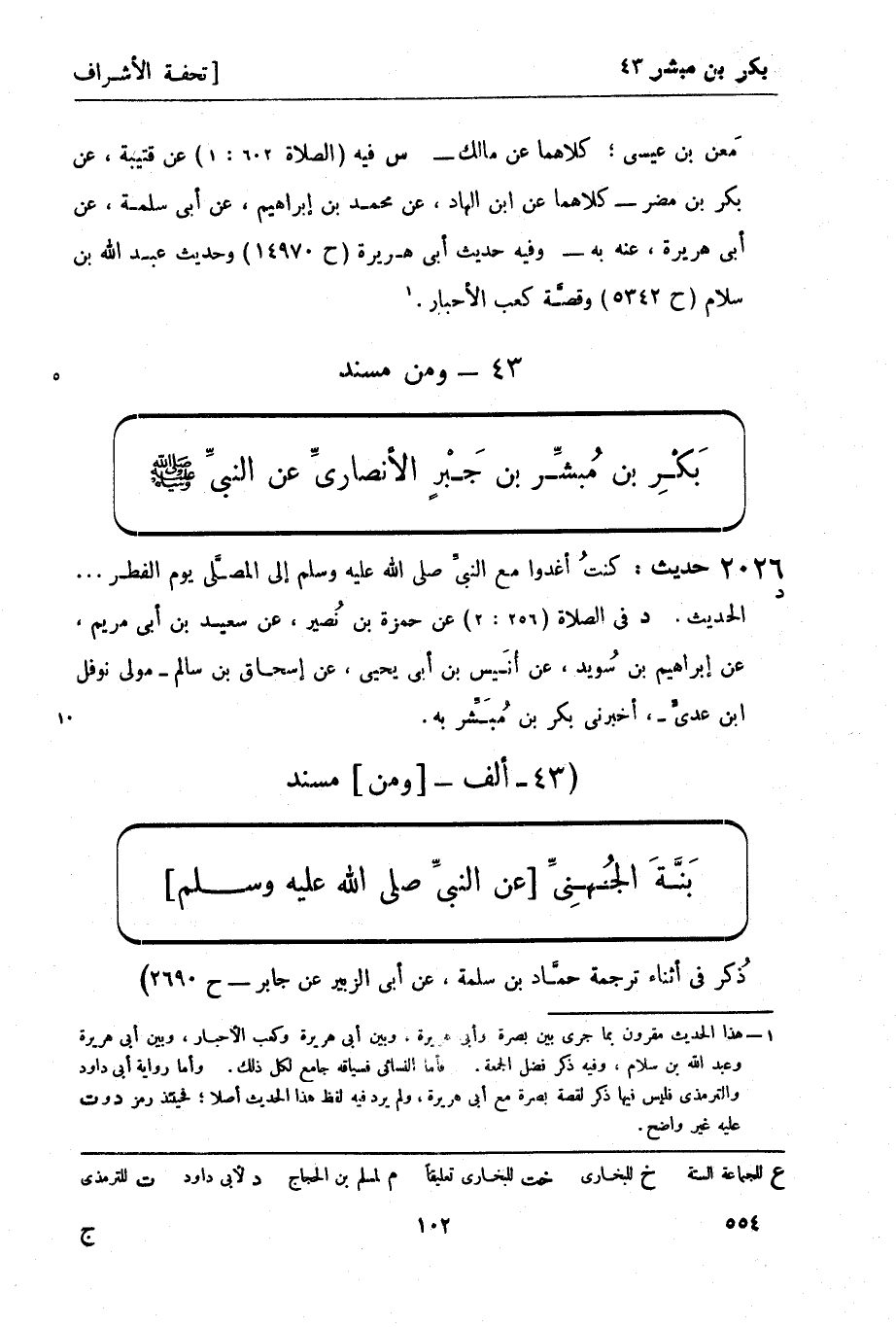 2026 -[د] حديث: كنت أغدو مع النبيِّ صَلَّى اللَّهُ عَلَيْهِ وَسَلَّمَ إلى المصلَّى يوم الفطر ... الحديث. د في الصلاة (256: 2) عن حمزة بن نُصير، عن سعيد بن ابي مريم، عن إبراهيم بن سُويد، عن أُنَيس بن أبي يحيى، عن إسحاق بن سالم - مولى نوفل بن عديَ -، أخبرني بكر بن مُبَشِّر به.