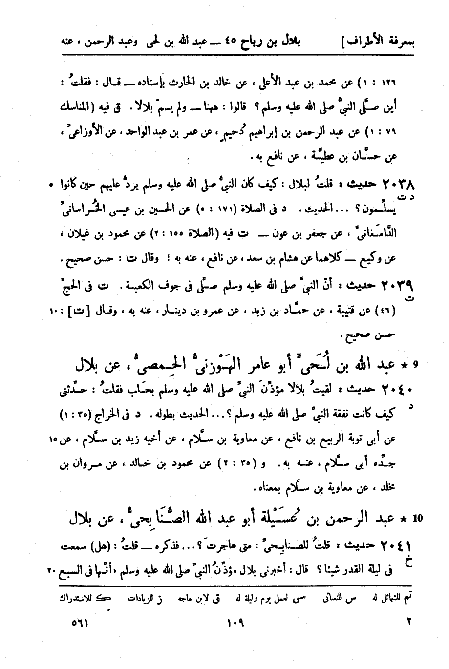 2038 -[د ت] حديث: قلت لبلال: كيف كان النبي صَلَّى اللَّهُ عَلَيْهِ وَسَلَّمَ يرد عليهم حين كانوا يسلمون؟ ... الحديث.