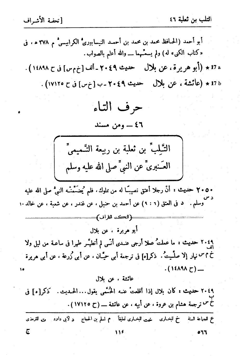 a 17 (أبو هريرة، عن بلال حديث 2049 - ألف [خ م س] في (ح) 14898) .