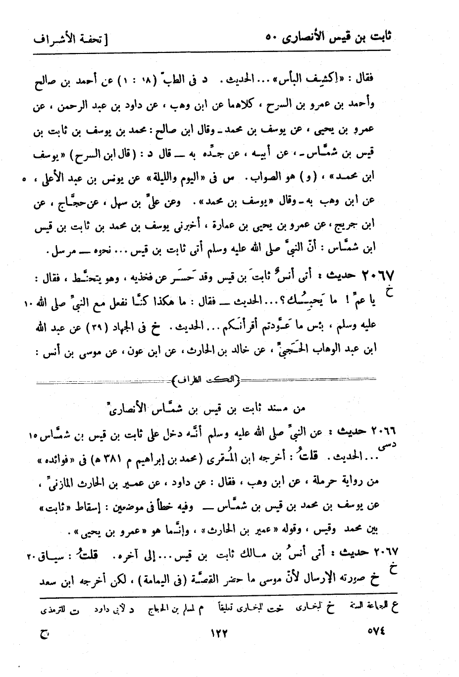 2067 -[خ] حديث: أتى أنسٌ ثابتَ بن قيس وقد حَسَر، عن فخذيه وهو يتحنَّط فقال: يا عمِّ ما يَحبِسُك؟ ... الحديث - فقال: ما هكذا كنَّا نفعل مع النبيّ صَلَّى اللَّهُ عَلَيْهِ وَسَلَّمَ بئس ما عَوَّدتم أقرانكم ... الحديث.