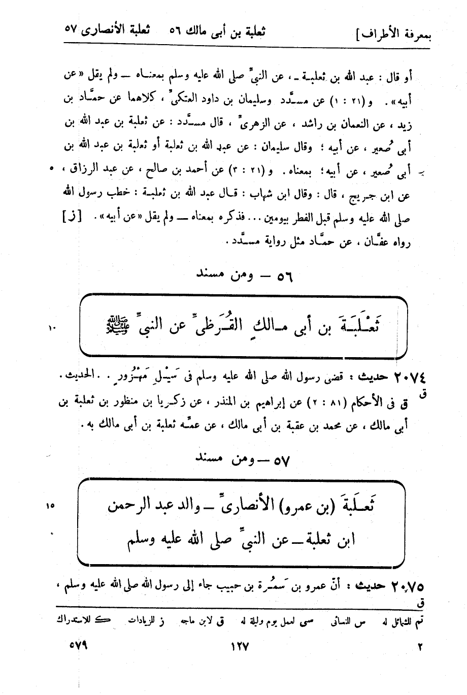 ق في الأحكام (81: 2) عن إبراهيم بن المنذر، عن زكريا بن منظور بن ثعلبة بن أبي مالك، عن محمد بن عقبة بن أبي مالك، عن عمِّه ثعلبة بن أبي مالك به.