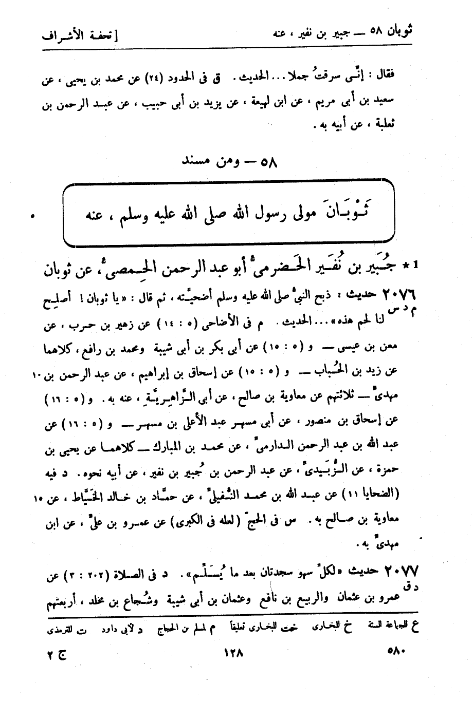 ق فيه (الصلاة 175: 2) عن عثمان بن أبي شيبة (وهشام بن عمَّار) بإسناده - ولم يقل عن أبيه. (ز) رواه عبد الرزاق (بن همام الحميري أبو بكر الصنعانيُّ صاحب المصنَّف (م) 211 هـ) ، عن إسماعيل بن عيَّاش، عن عبد العزيز بن عبيد الله، عن عبد الرحمن بن جبير بن نفير، عن أبيه، عن ثوبان.