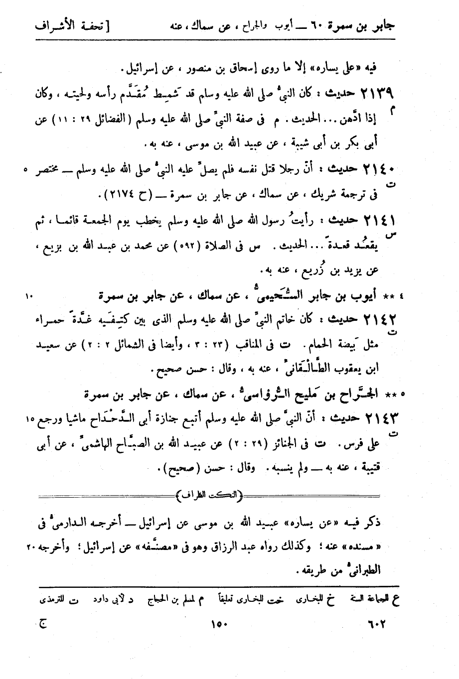 2140 - حديث: أنّ رجلاً قتل نفسه فلم يصل عليه النبيُّ صَلَّى اللَّهُ عَلَيْهِ وَسَلَّمَ - مختصر في ترجمة شريك، عن سماك، عن جابر بن سمرة - (ح2174) .