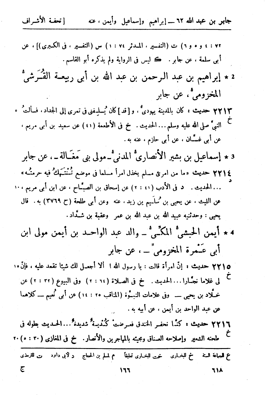 2216 -[خ] حديث: كنَّا نحفر الخندق فعرضتْ كُديةٌ شديدةٌ ... الحديث بطوله في طحنه الشعير وإصلاحه العناق ومجيئه بالمهاجرين والأنصار.
