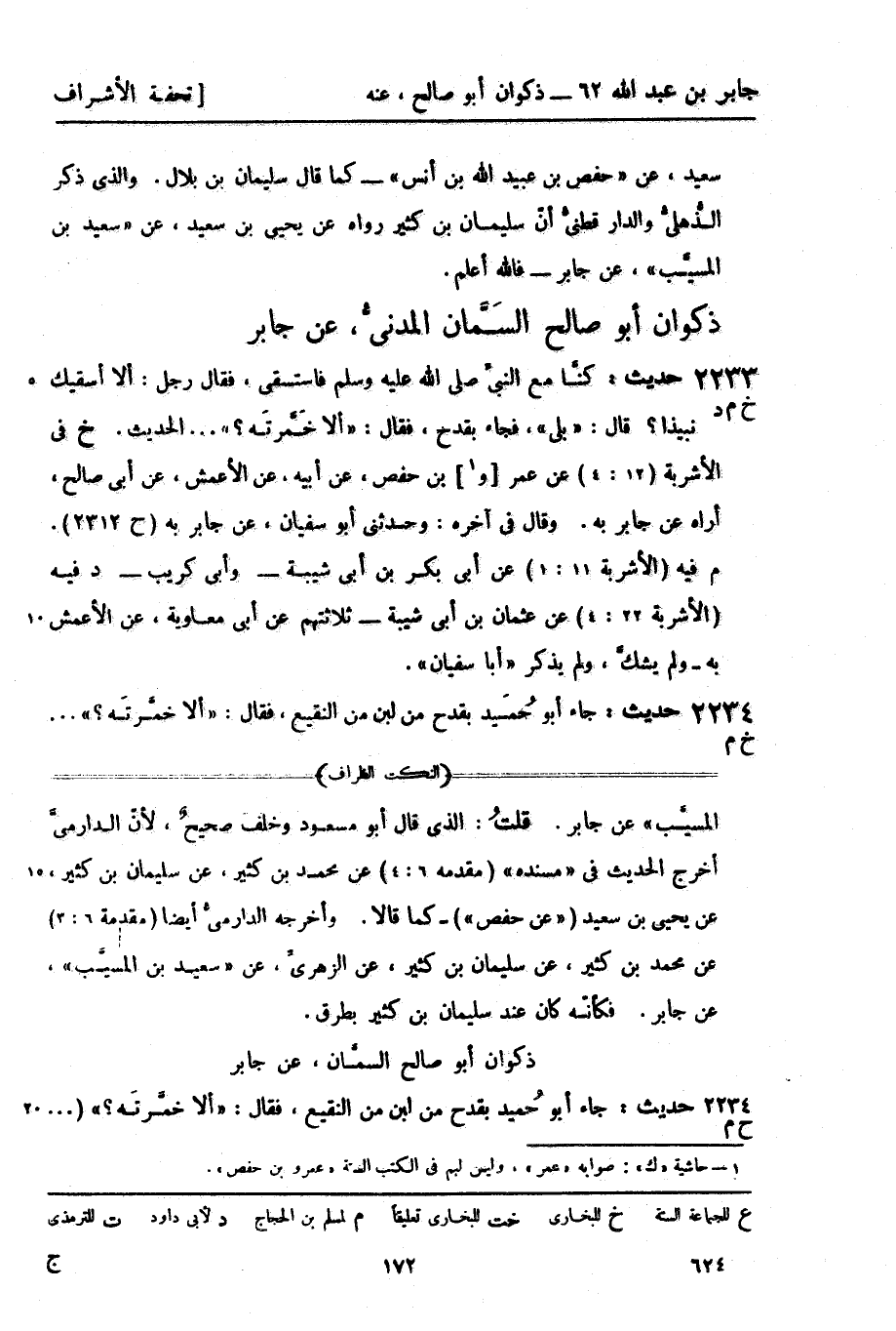 خ في الأشربة (12: 4) عن عمر [و1] بن حفص، عن أبيه، عن الأعمش، عن أبي صالح أراه عن جابر به. وقال في آخره: وحدثني أبو سفيان، عن جابر به (ح2312) .