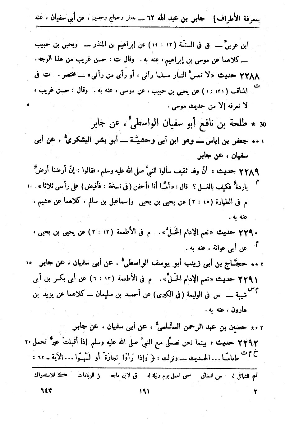 2292 -[خ م ت] حديث: بينما نحن نصلِّي مع النبيِّ صَلَّى اللَّهُ عَلَيْهِ وَسَلَّمَ إذا أقبلتْ عيرٌ تحمل طعاماً ... الحديث - ونزلت: وَإذا رَأوْا تِجارَةً أو لهوا ... (الآية -[192]- 62: 11 -) تقدَّم في أوَّل ترجمة سالم بن أبي الجعد، عن جابر - (ح2239) .