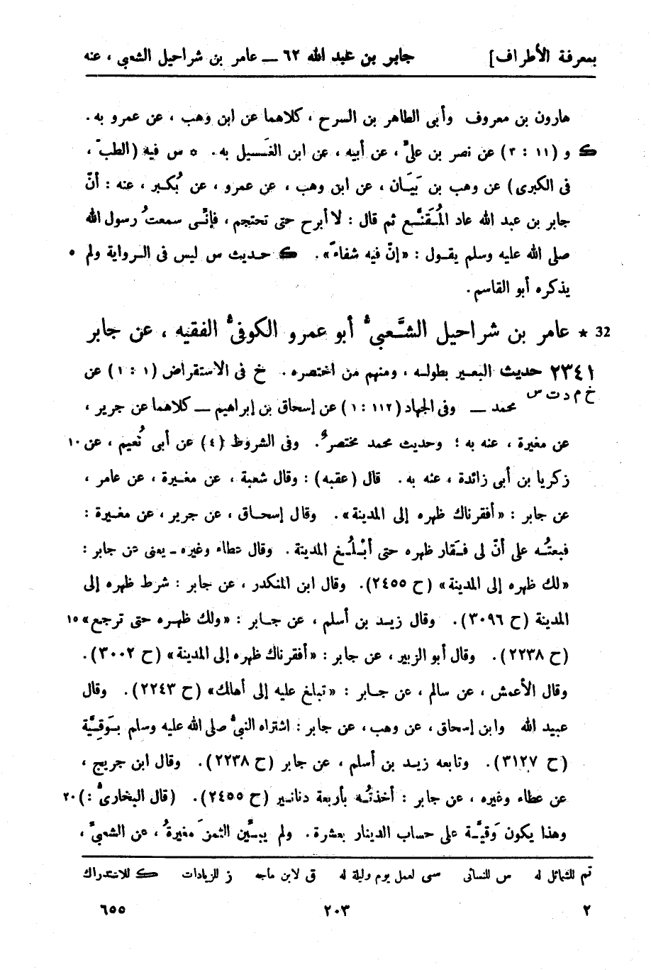 عامر بن شراحيل الشَّعبيُّ أبو عمرو الكوفيُّ الفقيه، عن جابر
