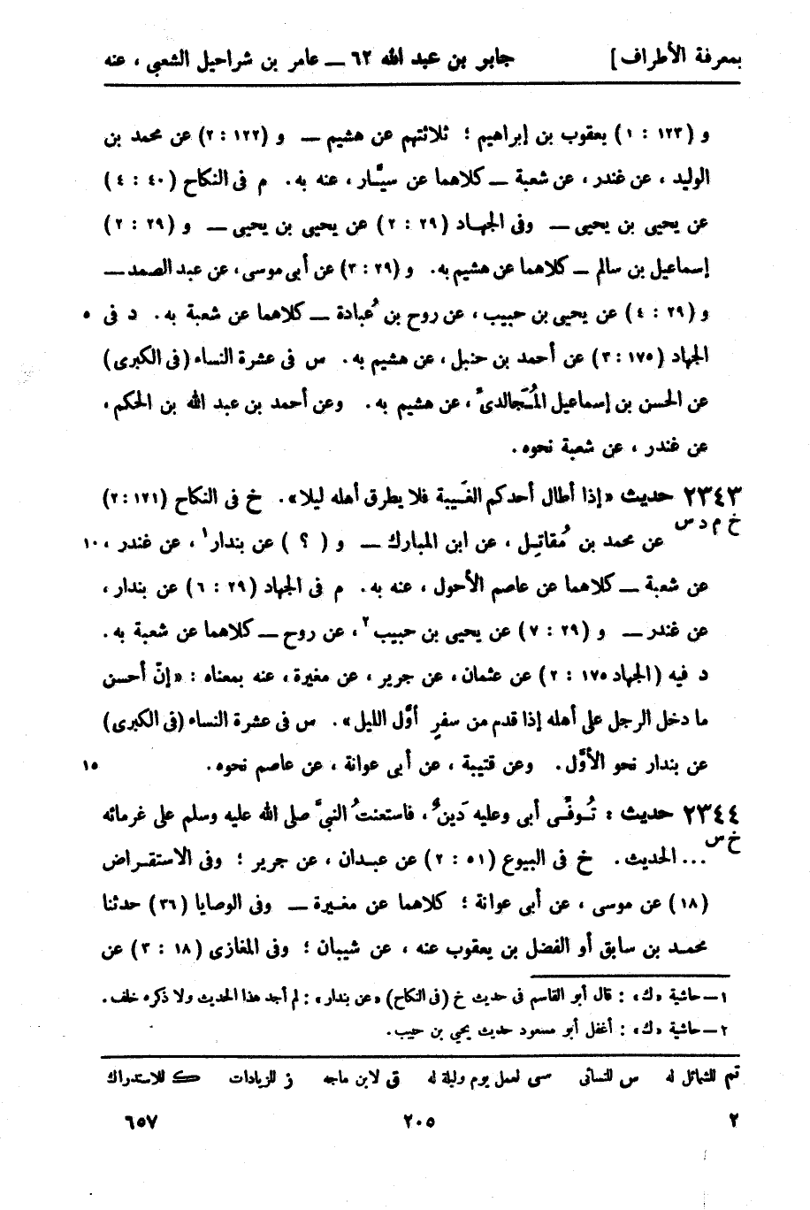 خ في البيوع (51: 2) عن عبدان، عن جرير، وفي الاستقراض (18) عن موسى، عن أبي عوانة، كلاهما عن مغيرة - وفي الوصايا (36) حدثنا محمد بن سابق أبو الفضل بن يعقوب عنه، عن شيبان، وفي المغازي (18: 3) عن -[206]- أحمد بن أبي سُريج (الصبَّاح) ، عن عبيد الله بن موسى، عن شيبان، عن فِرَاس - وفي علامات النبوّة (المناقب 25: 10) عن أبي نُعيم، عن زكريا بن أبي زائدة - ثلاثتهم عنه به.