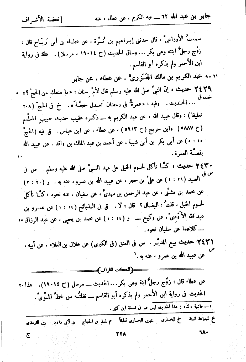 عبد الكريم بن مالك الجَزَريُّ، عن عطاء، عن جابر