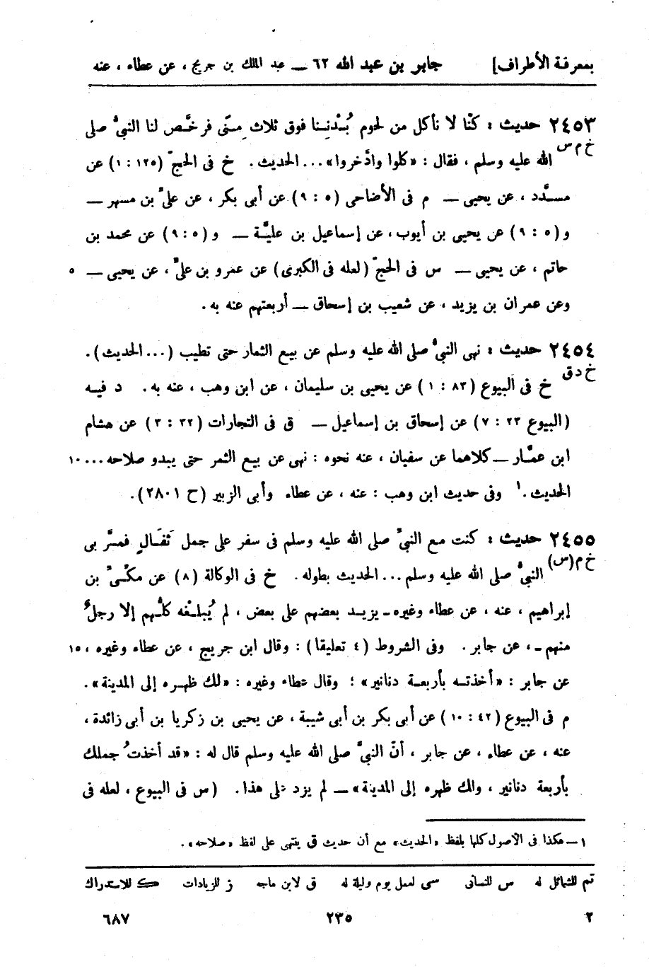 م في الأضاحي (5: 9) عن أبي بكر، عن عليِّ بن مسهر - و (5: 9) عن يحيى بن أيوب، عن إسماعيل ابن عليَّة - و (5: 9) عن محمد بن حاتم، عن يحيى -
