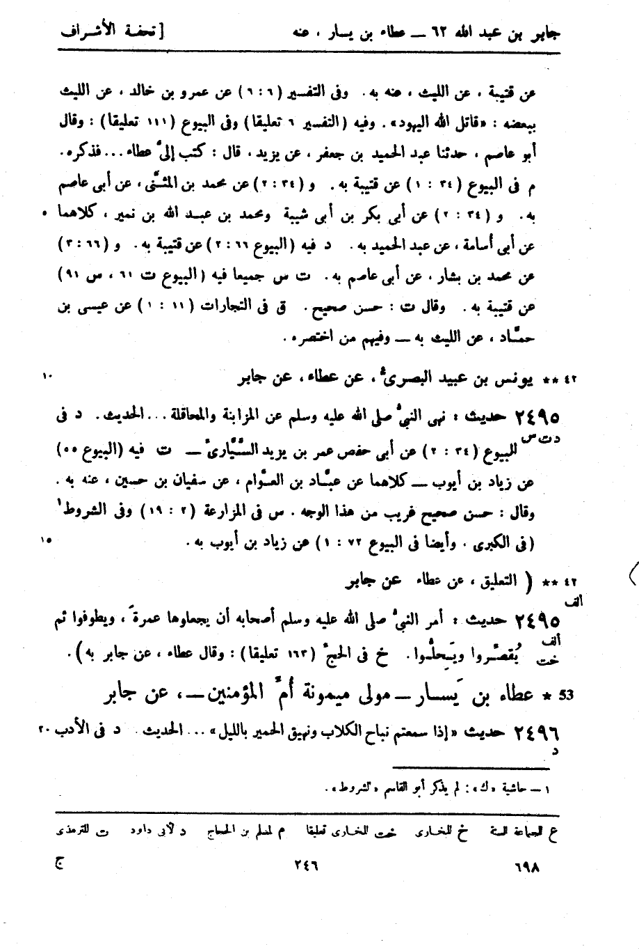 (ألف خت) حديث: أمر النبيُّ صَلَّى اللَّهُ عَلَيْهِ وَسَلَّمَ أصحابه أن يجعلوها عمرة، يطوفوا ثم يُقصِّروا ويَحِلُّوا. (خ) في الحجِّ (163 تعليقاً) : وقال عطاء، عن جابر به) .
