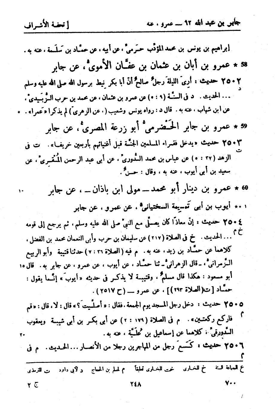 م فيه (الصلاة 36: 7) حدثنا قتيبة وأبو الربيع الزَّهرانيُّ، - قال الزهرانيُّ - ثنا حمَّاد، عن أيوب، عن عمرو، عن جابر به. قال أبو مسعود: هكذا قال مسلمٌ. وقتيبة لا يذكر في حديثه أيوبَ إنَّما يقول: حمَّاد [ (ت الصلاة 293) ] ، عن عمرو - (ح 2517) .