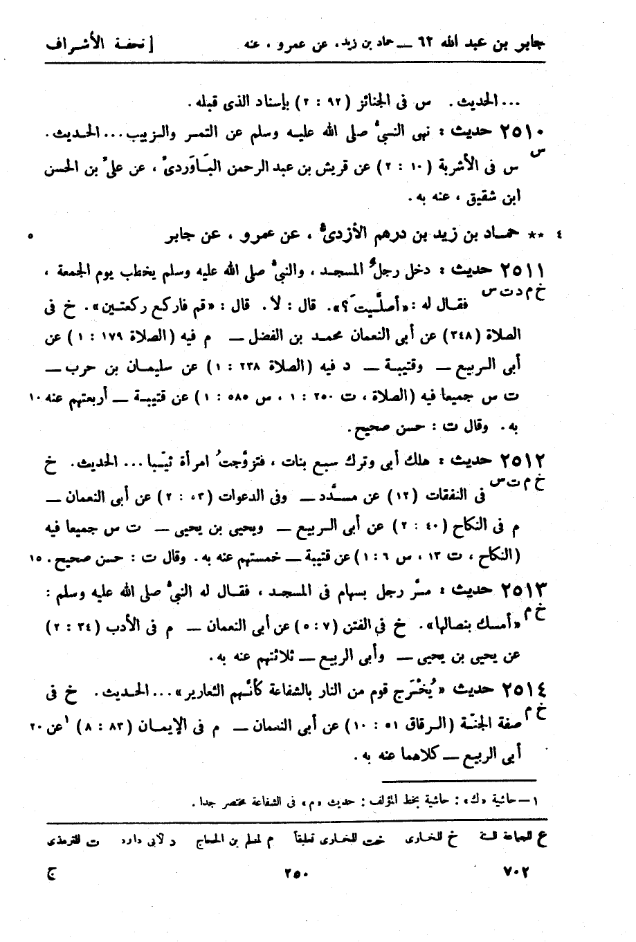 د فيه (الصلاة 238: 1) عن سليمان بن حرب - (ت س) جميعاً فيه (الصلاة ت 250: 1، س 585: 1) عن قتيبة - أربعتهم عنه به. وقال
