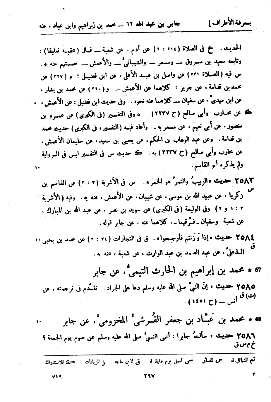 س في الأشربة (3: 3) عن القاسم بن زكريا، عن عبيد الله بن موسى، عن شيبان، عن الأعمش، عنه به. وفيه (الأشربة 3: 1و2) وفي الوليمة (في الكبرى) عن سويد بن نصر، عن عبد الله بن المبارك، عن شعبة وسفيان - فرَّقهما - كلاهما عنه، عن جابر قوله.