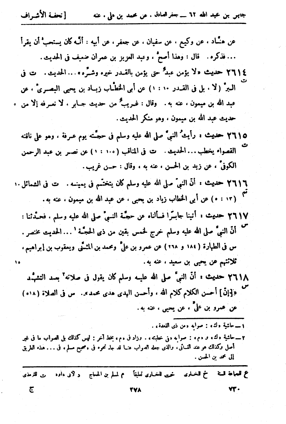 2617 -[س] حديث: أتينا جابراً فسألناه عن حجَّة النبيّ صَلَّى اللَّهُ عَلَيْهِ وَسَلَّمَ، فحدَّثنا: أنّ النبيَّ صَلَّى اللَّهُ عَلَيْهِ وَسَلَّمَ خرج لخمس بقين من ذي الحجَّة 1 ... الحديث مختصر.