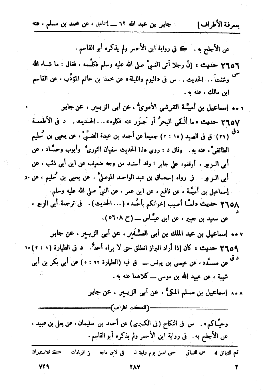 د: روى هذا الحديث سفيان الثوريُّ وأيوب وحمَّاد، عن أبي الزبير، أوقفوه على جابر، وقد أُسند من وجه ضعيف عن ابن أبي ذئب، عن أبي الزبير. (ز) رواه إسحاق بن عبد الواحد الموصليُّ، عن يحيى بن سُليم، عن إسماعيل بن أُميَّة، عن نافع، عن ابن عمر، عن النبيّ صَلَّى اللَّهُ عَلَيْهِ وَسَلَّمَ.