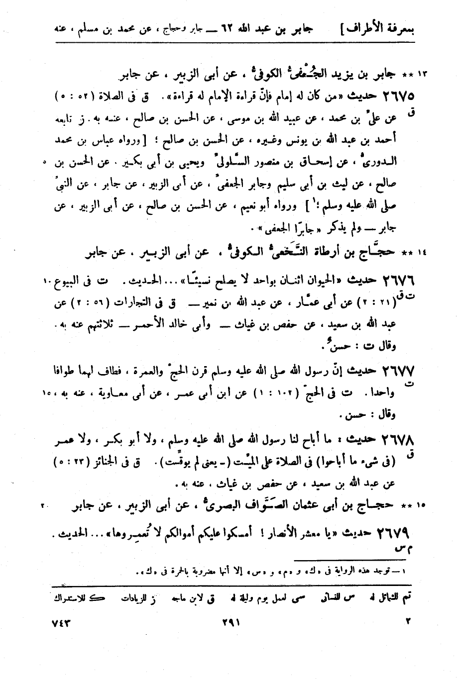 ق في الصلاة (52: 5) عن عليِّ بن محمد، عن عبيد الله بن موسى، عن الحسن بن صالح، عنه به. تابعه أحمد بن عبد الله بن يونس وغيره، عن الحسن بن صالح، [رواه عباس بن محمد الدوريُّ، عن إسحاق بن منصور السَّلوليِّ ويحيى بن أبي بكير، عن الحسن بن صالح، عن ليث بن أبي سليم وجابر الجعفيِّ، عن أبي الزبير، عن جابر، عن النبيِّ صَلَّى اللَّهُ عَلَيْهِ وَسَلَّمَ] 1 ورواه أبو نعيم، عن الحسن بن صالح، عن أبي الزبير، عن جابر - ولم يذكر جابر الجعفي.