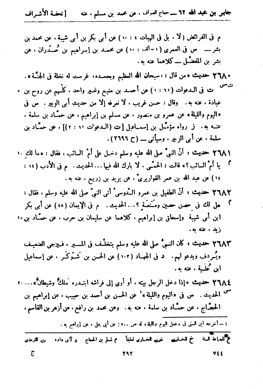 س في اليوم والليلة 1، عن الحسن بن أحمد بن حبيب، عن إبراهيم بن الحجَّاج، عن حمَّاد بن سلمة، عنه به. وعن محمد بن رافع، عن أزهر بن القاسم، -[293]- عن هشام عن الحجَّاج - ولم ينسبه -، عن أبي الزبير، عن جابر قوله.
