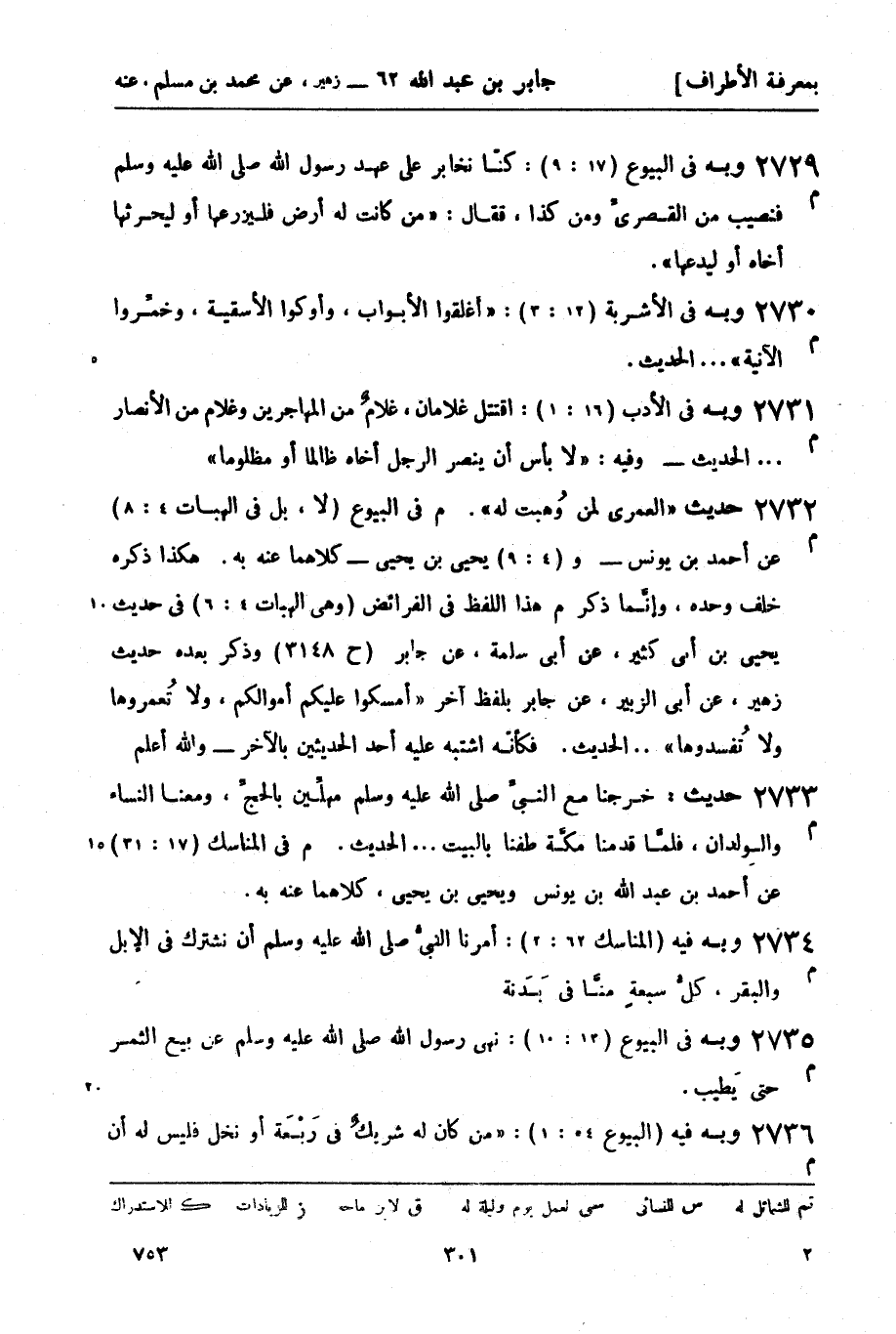 م في البيوع (لا، بل في الهبات 4: 8) عن أحمد بن يونس - و (4: 9) يحيى بن يحيى - كلاهما عنه به. هكذا ذكره خلف وحده، وإنَّما ذكر