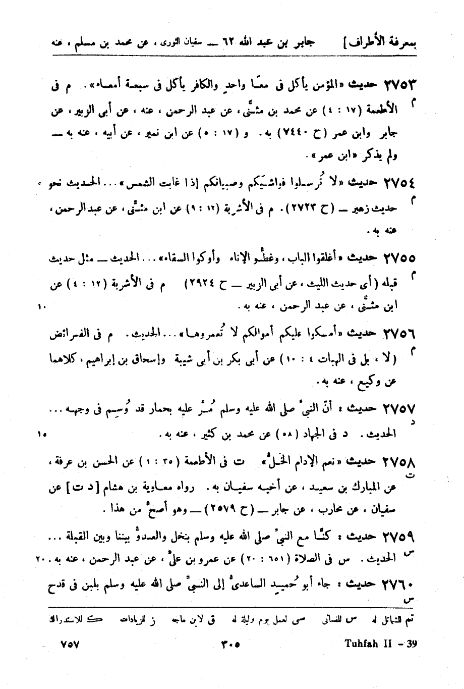 2753 - حديث: المؤمن يأكل في معي واحدٍ والكافر يأكل في سبعة أمعاء.