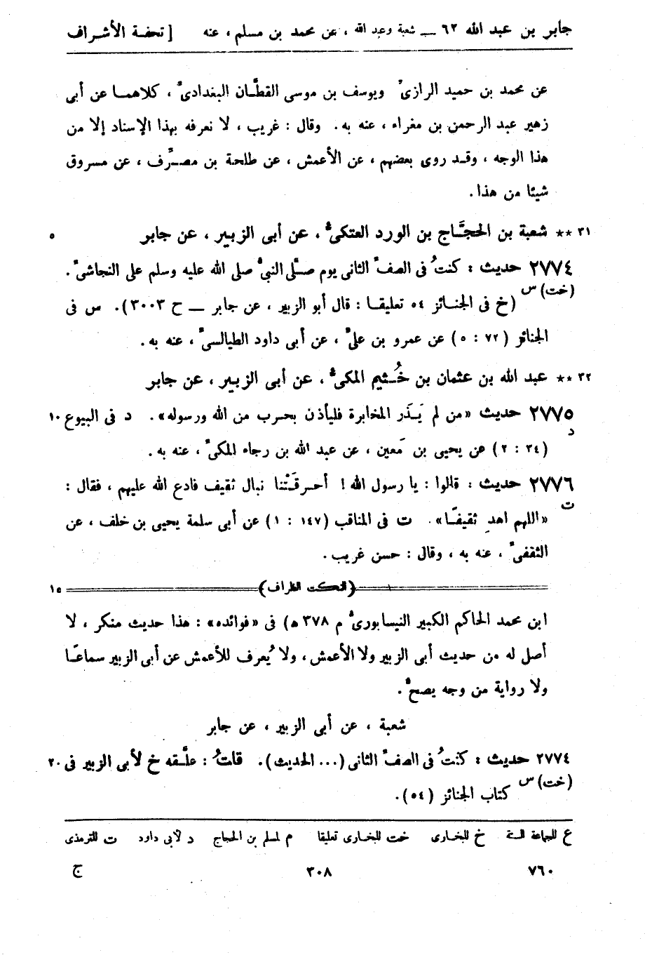 2774 -[خت] س حديث: كنتُ في الصفِّ الثاني يوم صلَّى النبيُّ صَلَّى اللَّهُ عَلَيْهِ وَسَلَّمَ على النجاشيِّ. (خ في الجنائز 54 تعليقاً: قال أبو الزبير، عن جابر - ح3003) .